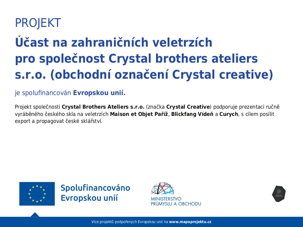 Projekt:Účast na zahraničních veletrzích pro společnost Crystal brothers ateliers s.r.o. (obchodní označení Crystal creative)